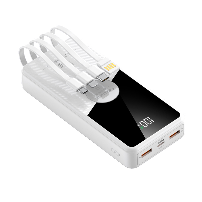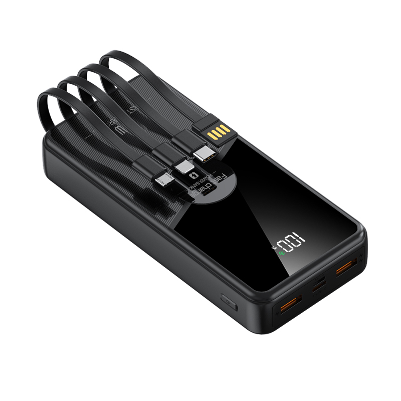 Ultradelgado para teléfono móvil, Banco de energía de 10000mah, 20000mah, 30000mah, 4 cables en 1, Cargador USB